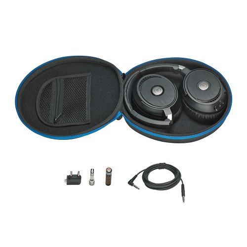- INCLUDES - Audio-Technica ATH-ANC33iS QuietPoint In-Ear Headphones; 4.3' Cable with 3.5mm Stereo Mini-Plug; Airline Adapter; AAA Battery; Protective Pouch; 1 Pair Comply Foam Tips; Rubber Tip-Ear Pieces (S/M/L Size). Blucoil Audio 6-Feet Premium Extension Cable with Stereo 3.5mm Tips for Earphones and Headphones. Portable Blucoil Hard Case for Earbuds/Earphones. 2-Pack of Blucoil AAA Batteries.