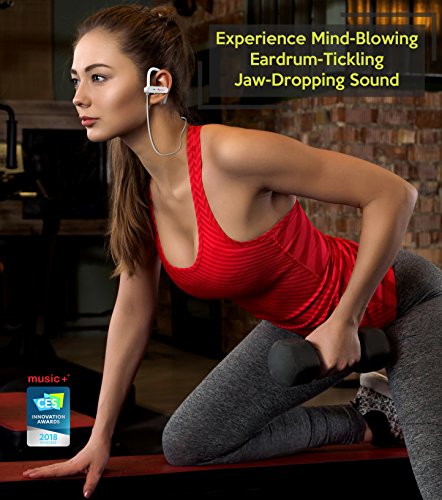 Bluetooth Wireless Headphones White Sport Earphones +Mic Noise Cancelling Beats Earbuds Sweat Proof in Ear Headset for Workout Gym Running Women Men Phones iPhone Galaxy