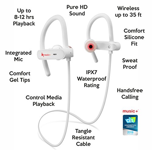 - FATIGUE FREE COMFORTABLE AND SECURE SNUG FIT WITH IPX-7 WATERPROOF EXCELLENT RATING - M+ Earphones feature Ergonomically designed flexible soft rubbery ear hooks with gel flex silicone earbuds to ensure your headphones stay unnoticeable, comfortably firm and in place to guarantee fatigue free ears