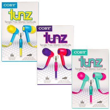 COBY BUDS,TUNZ. TANGLE FREE STEREO EARBUDS