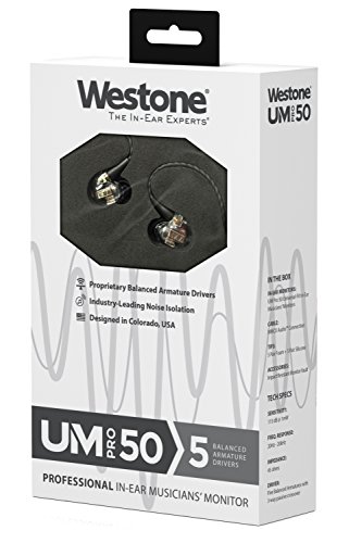 - FIVE BALANCED-ARMATURE DRIVERS WITH THREEWAY CROSSOVER: The UM Pro 50 features five proprietary balanced-armature drivers with a 3-way passive crossover, and is the flagship In Westone's line of Universal-Fit In-Ear Musicians' Monitors. Thunderous low's, combine with a rich, detailed mid-range, and shimmering articulate highs, in a balanced and harmonious presentation that meets the demands of the biggest names in the music industry, and of the most discerning music lover.